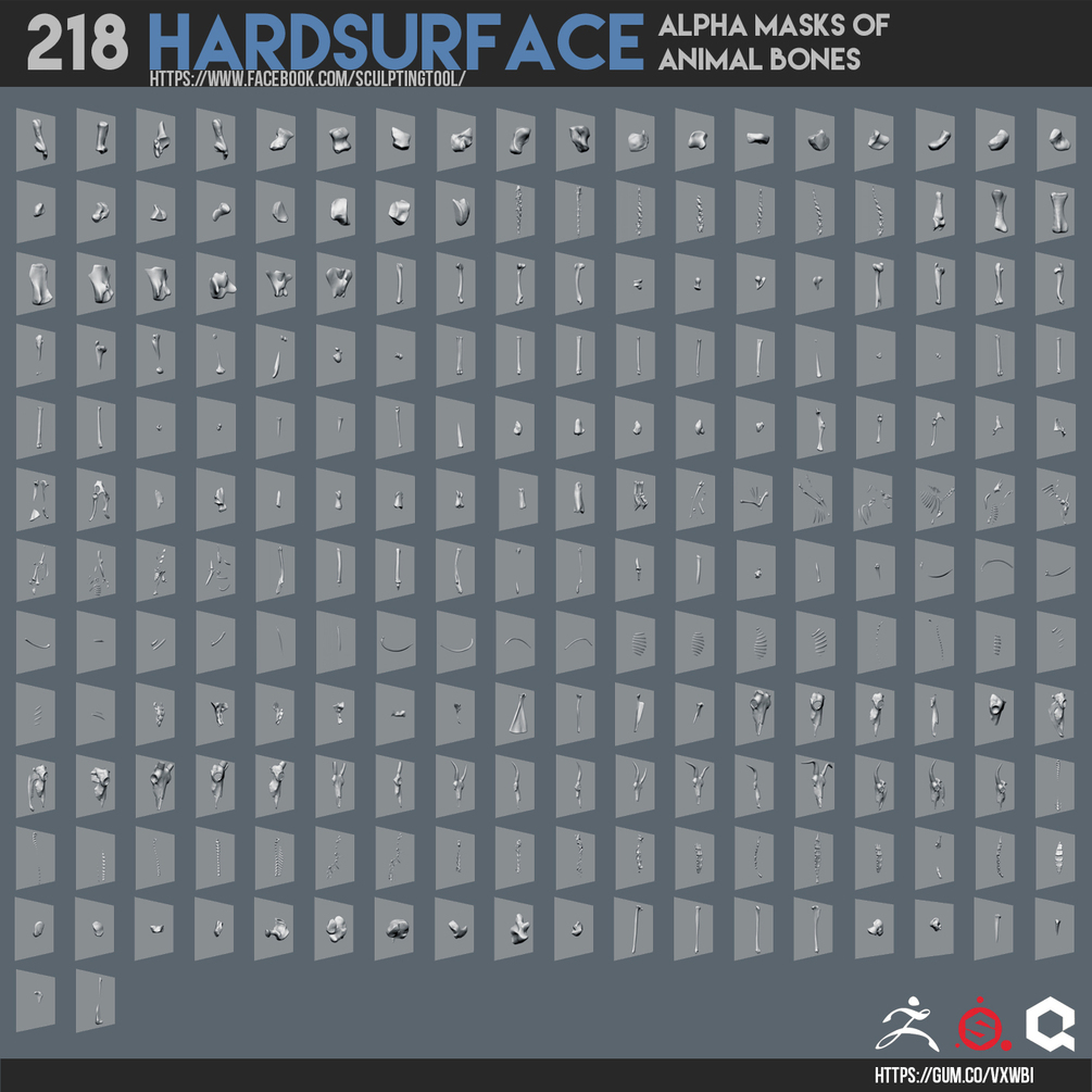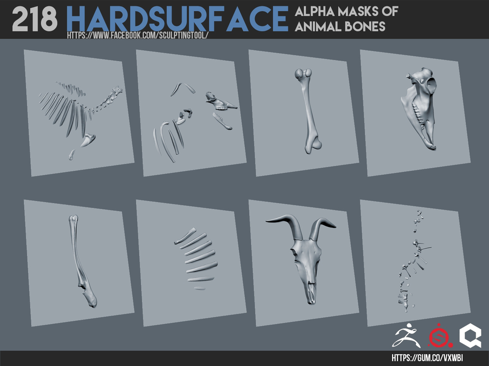 218 Hardsurface alpha masks of animal bones