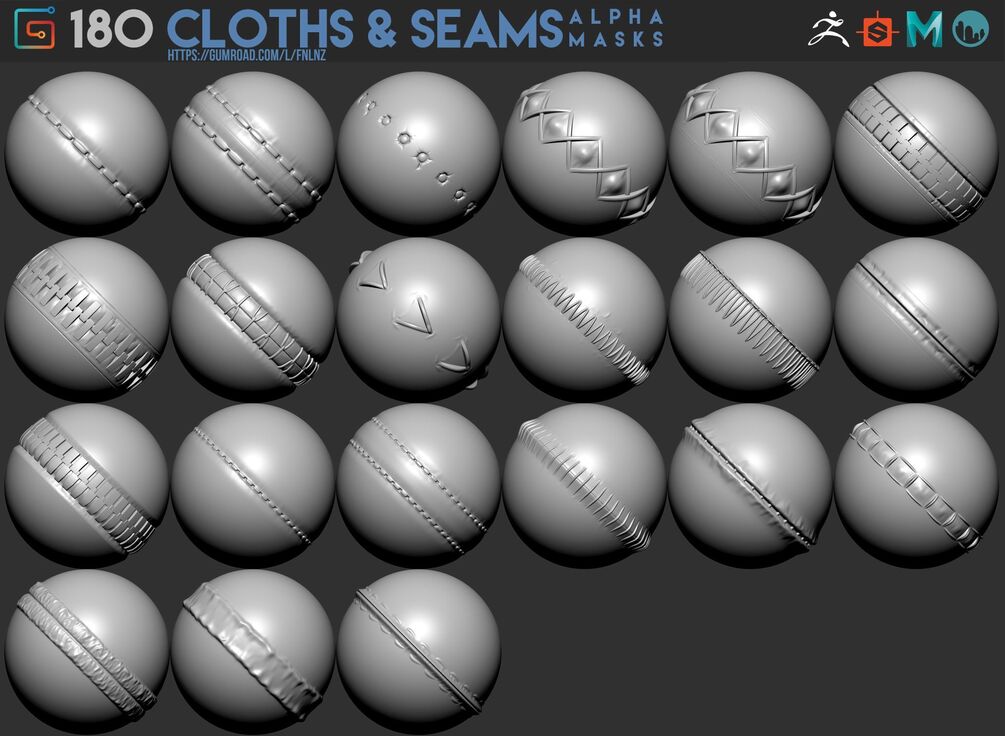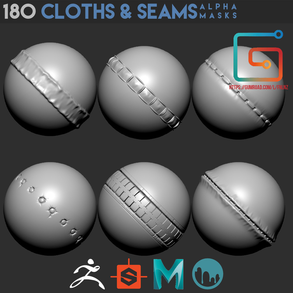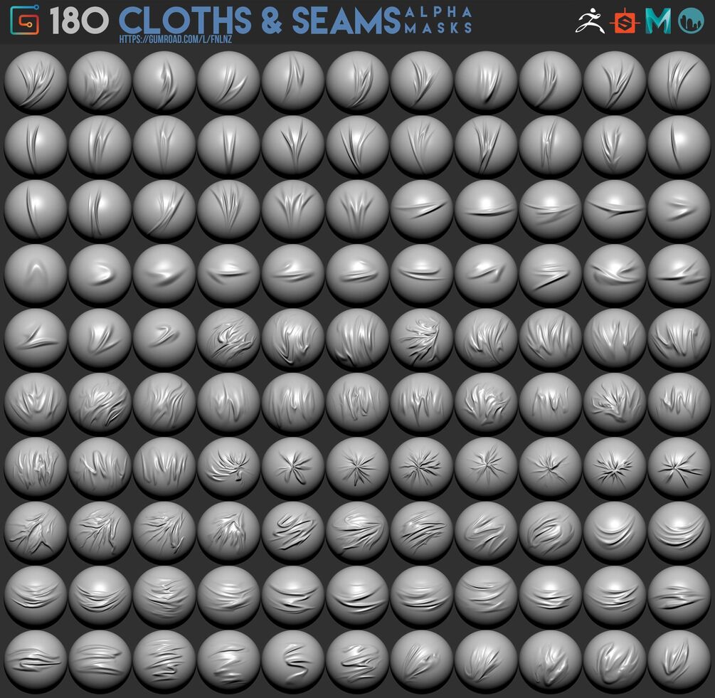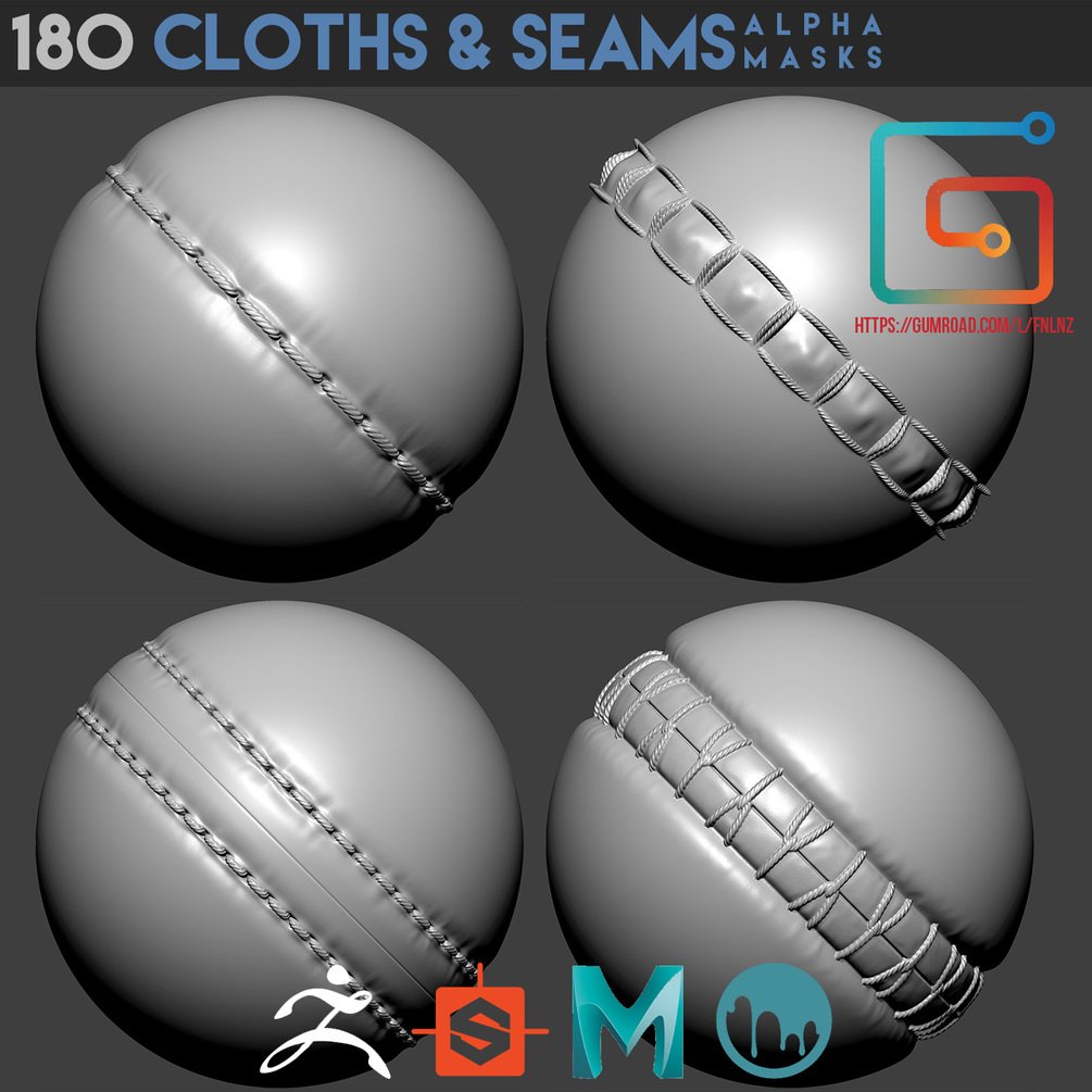 Pack include 180 various alpha masks of clothes and seams.